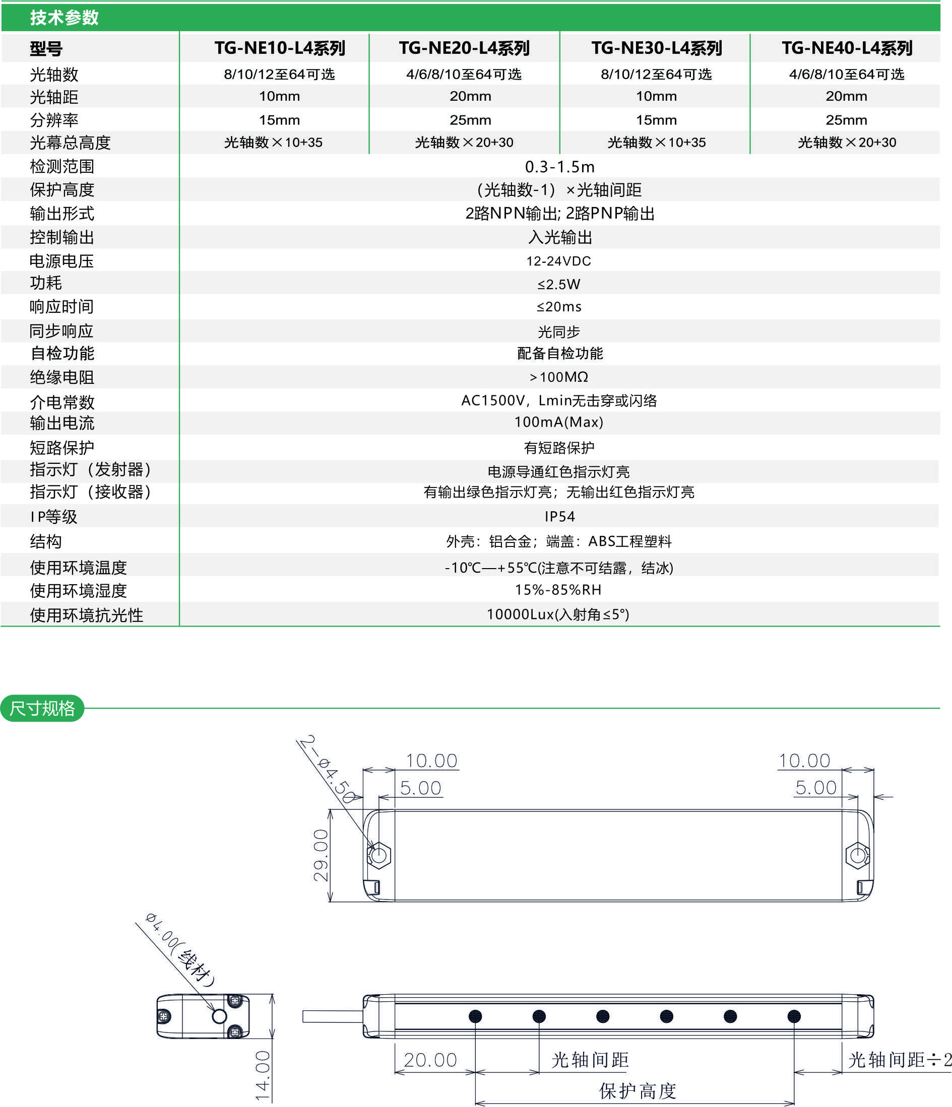 四級(jí)安全光幕超薄型TG-NE-L4側(cè)面對(duì)射