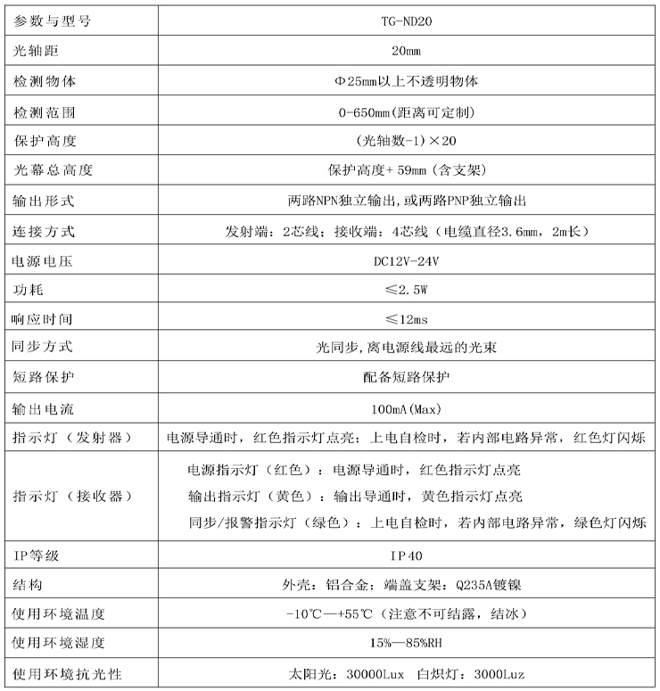 首頁 > 產品中心 >>傳 感 器 >> 安全光幕 >> 四級安全光幕超薄型TG-ND-20系列