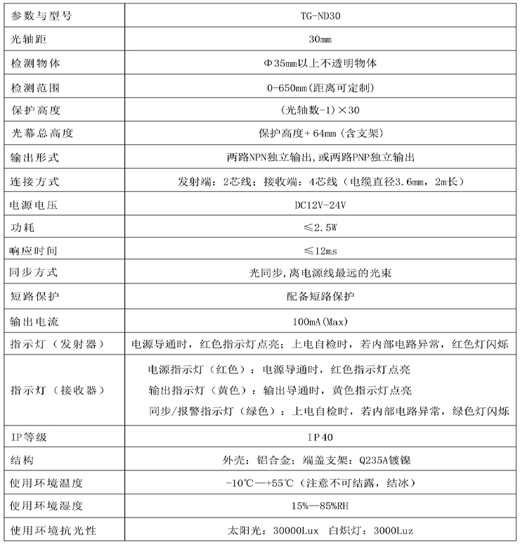 首頁 > 產品中心 >>傳 感 器 >> 安全光幕 >> 四級安全光幕超薄型TG-ND-30系列