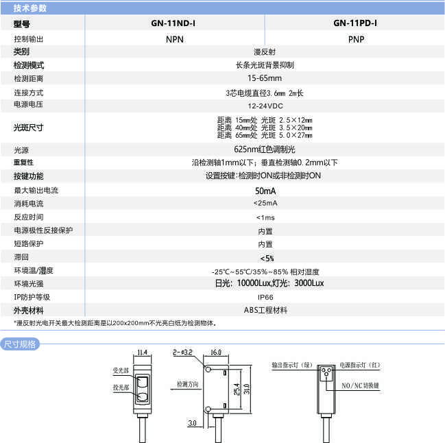 首頁 > 產品中心 >>傳 感 器 >> 光電開關 >> 條形光背景抑制光電開關GN-11D-I系列